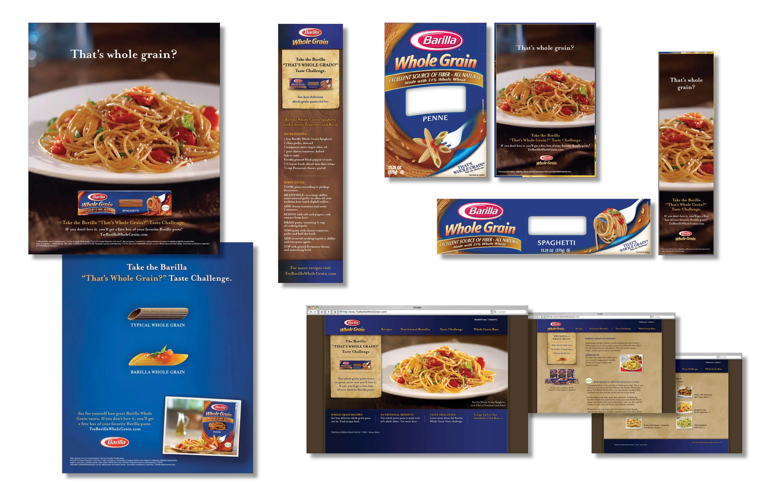 Here we created a Barilla Whole Wheat campaign. An integrated campaign using print, packaging and online.
